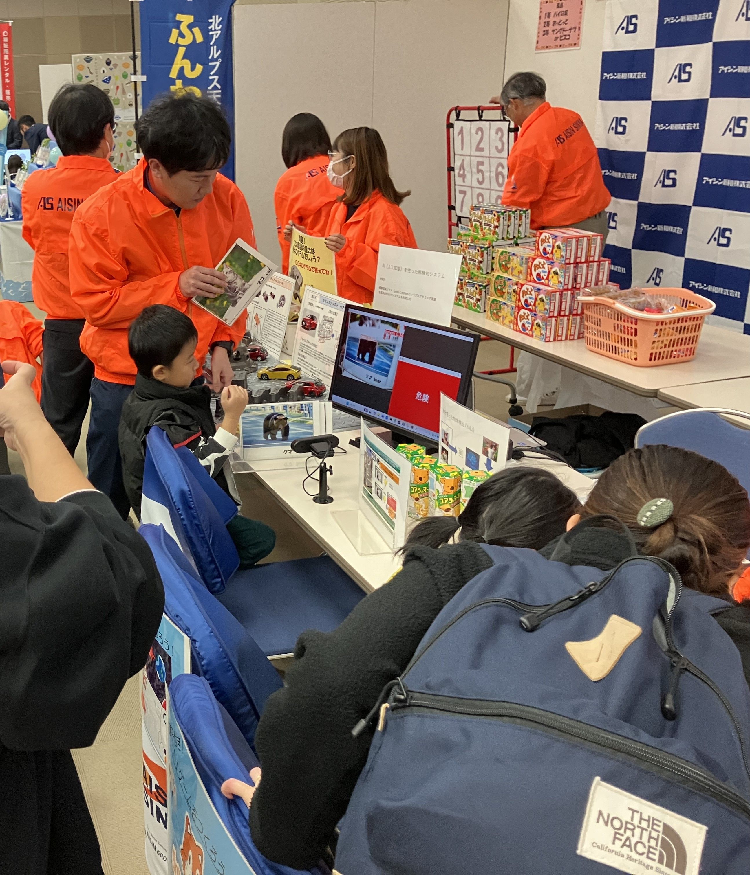 会社PR動画や、製品展示の他、子供たちに向けたプログラミング体験とストラックアウトをして楽しんでもらいました。